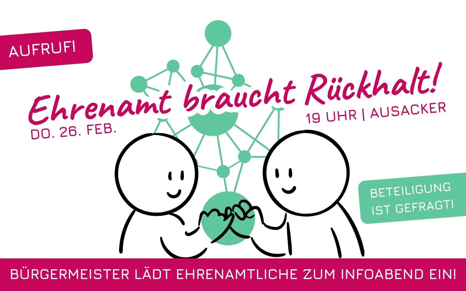 im Februar haben wir einiges für euch im Gepäck: neue Projekte, Updates aus laufenden Prozessen und erste Hinweise auf das, was sich gerade formiert. Wer Lust hat, unsere Region aktiv und sinnvoll mitzugestalten, ist herzlich eingeladen – klickt euch rein und macht mit.
