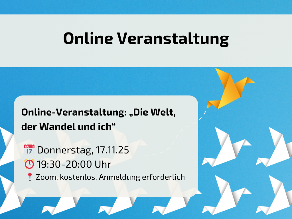 Do, 17.11.25 Online-Veranstaltung „Die Welt, der Wandel und ich“